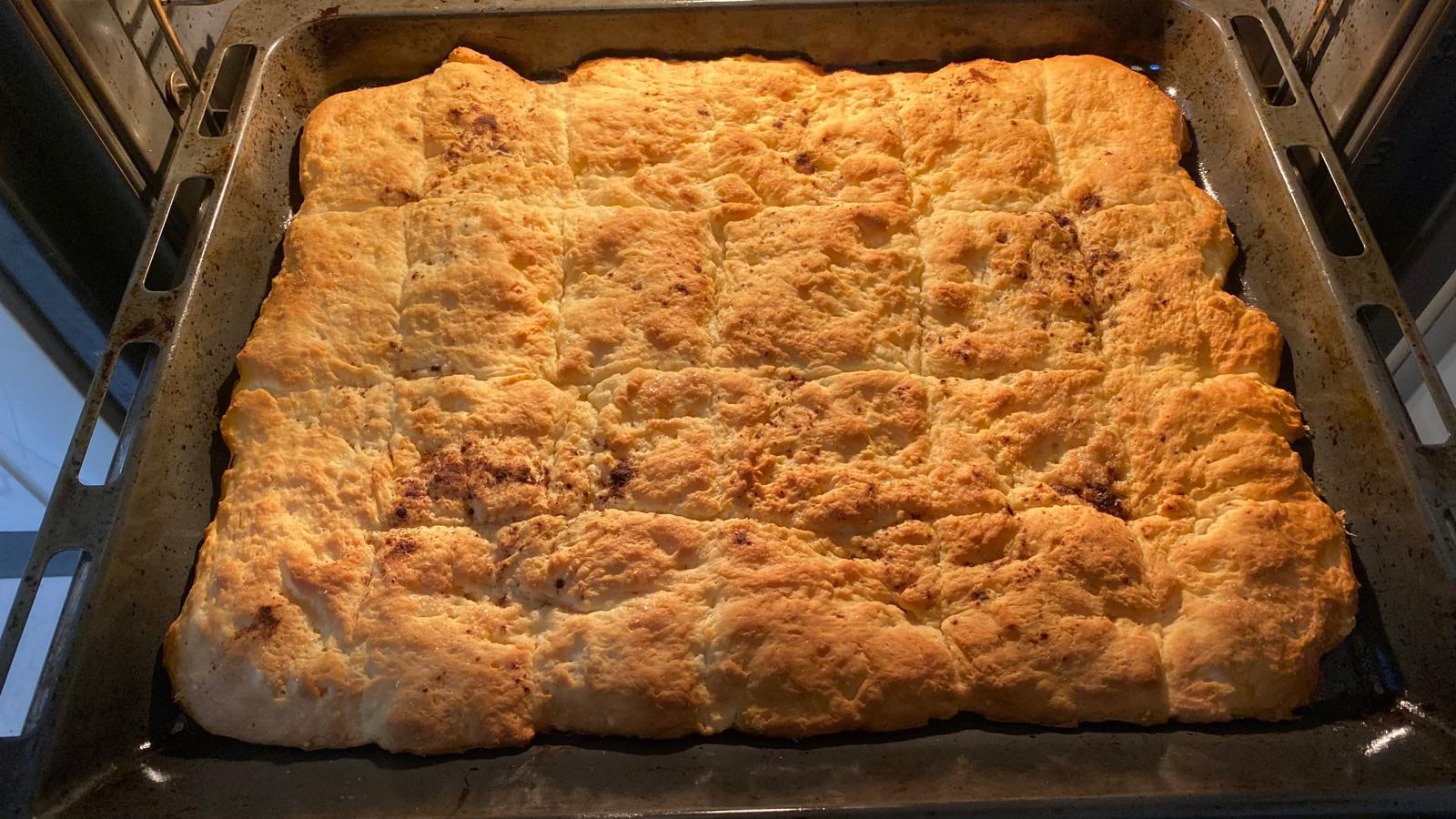 Die 500 g Mehl in eine Schüssel sieben und eine Mulde bilden. Danach die Hälfte der Milch warm machen und die Hefe mit einem gestrichenen TL Zucker verquirrlen und in der Mehlmulde mit der Hälfte des Mehles zu einem dicken Brei verrühren. Danach 20 Min. gehen lassen bis der Hefestock aufgegangen ist. Danach gibt man eine Prise Salz ,den Zucker, Ei, Margarine und gehackte Rosinen dazu und verrührt das Ganze mit dem Rest der warmen Milch zu einen dicken Klumpen.Der Teig muss sich von der Schüssel lösen, darf nicht kleben bleiben. Den Teig an eine warme Stelle stellen bis er sich verdoppelt hat. Ein Kuchenblech mit Fett bestreichen und den Teig hinein geben und durch Flachdrücken auf das ganze Blech verteilen. Eine Scheibe Butter zerlaufen lassen und den Teig mit einer Bürste bestreichen. Zwei Löffel Zucker mit einer Prise Zimt vermischen und den Teig damit bestreuen. Es können auch noch feingehackte Mandeln darüber gestreut werden. Das Blech mit dem Teig nochmals an eine Warme Stelle ca. 20 - 30 Min. gehen lassen. Den Backofen auf 170 Grad vorwärmen und den Kuchen ca. 20 - 25 Min Goldbraun backen.Über die Buchten Vanillesoße geben Lecker !!!